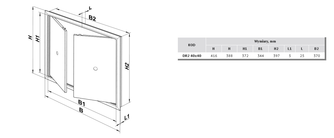 DR2 40X40 Drzwiczki rewizyjne dwuskrzydłowe plastikowe, wew. 344x372 mm, białe