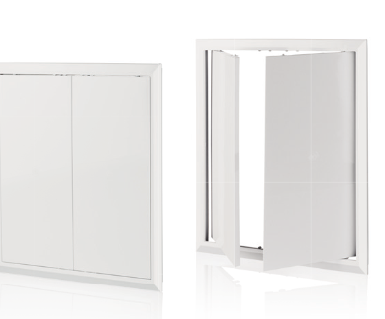 Drzwiczki rewizyjne, dwuskrzydłowe z tworzywa ABS o wymiarach wew. 344x372 mm, białe.