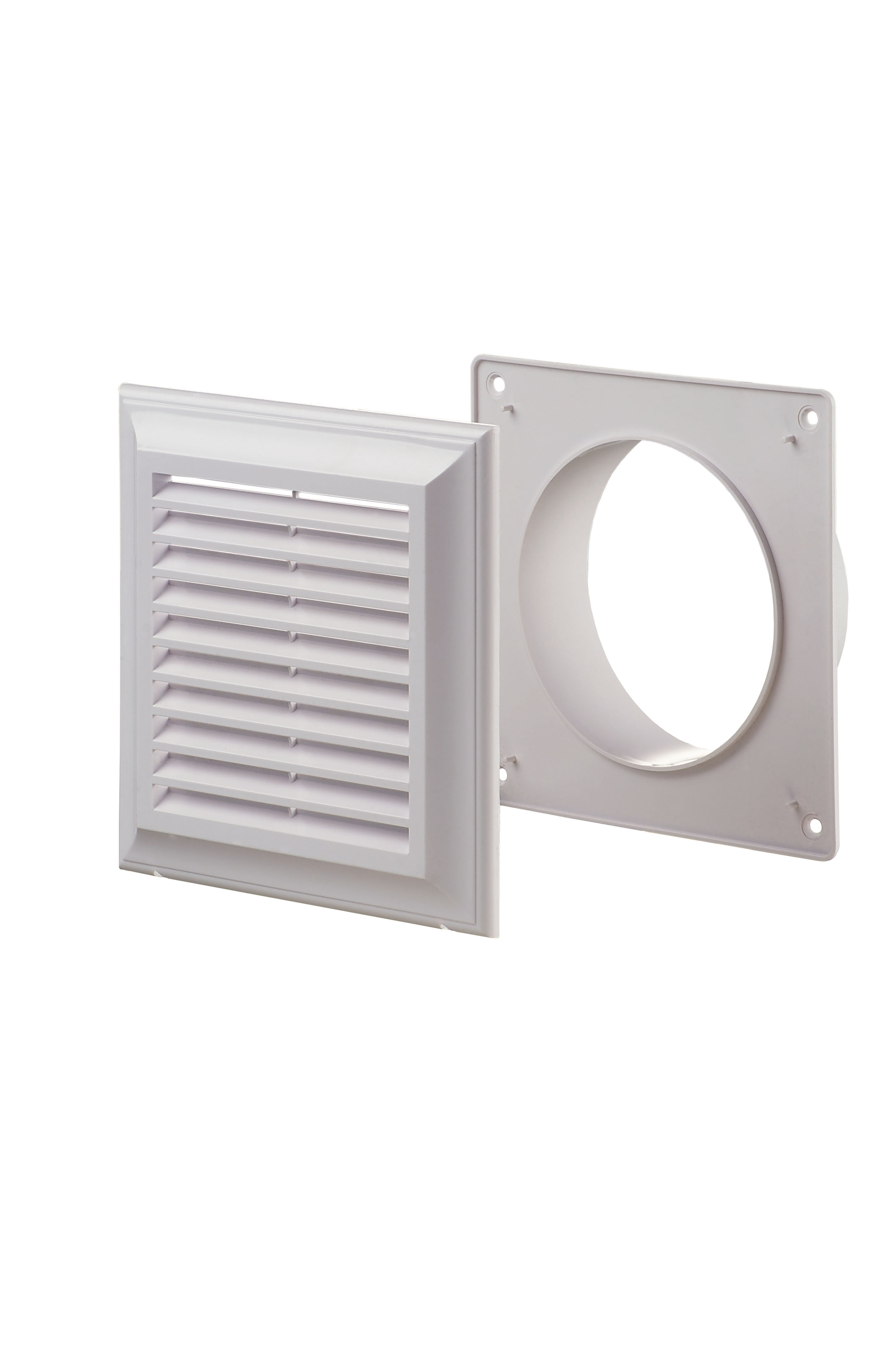 EL180AK - kratka wentylacyjna 180x180 mm z siatką i kołnierzem okrągłym fi 125 mm, biała