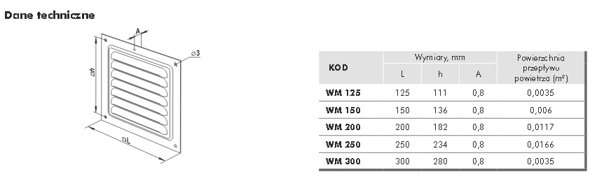 WM300 - osłona wentylacyjna ze stali 300x300 mm z siatką, biała